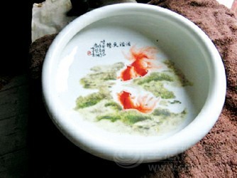 笔洗是供书画家清洗毛笔的瓷器。我收藏的这件瓷笔洗,是“珠山八友”中的绘瓷大家邓碧珊(1874-1930)画的。他是清末秀才,父亲以打铁为生,从小生活在鄱阳湖上。少年时代跟随父亲下湖捕捞,对鱼儿习性观察细致。1931年,邓来到景德镇以字画为业。他绘瓷擅长粉彩鱼藻图,技法颇受日本绘画影响,所绘鱼藻形象生动,笔调细腻,情趣高雅,他的书法修养也甚精深,颇受同行绘瓷艺人的尊重。