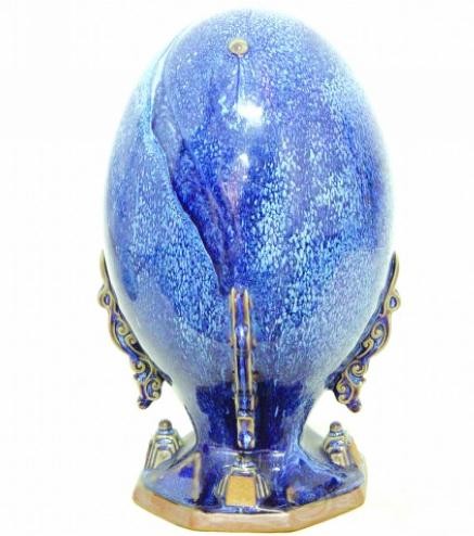钧瓷实则是火的艺术,其灵魂就在于窑变,钧瓷最突出的成就在于铜红釉的稳定烧成,改变了以往单一釉瓷的局面,因而成为中国传统文化的一枝奇葩。自然窑变不等同于刻意地用其他色彩来追求某种效果,“那种饱满、丰富的窑变通过烧制火候的掌握,使得铜红釉在高温下的流动痕迹显示出来,出现了意想不到的具有特殊美感和艺术情趣的瑰丽色釉。”所以一般精品钧瓷应具备以下特点:青者若蓝天,月白胜美玉,紫者或像熟透的葡萄,或似怒放的玫瑰,红者如盛开的牡丹、深红的海棠。