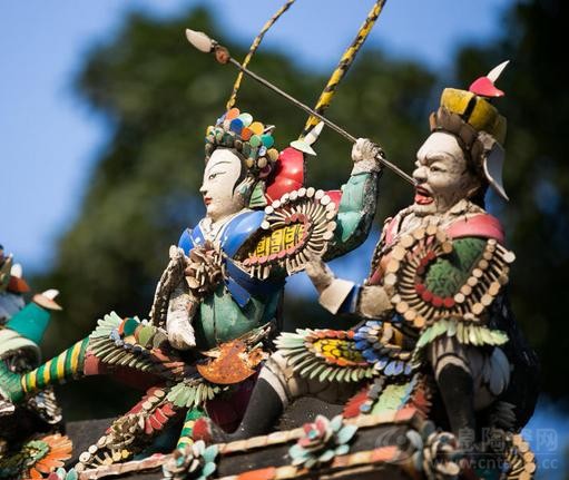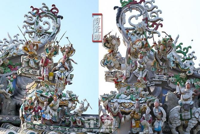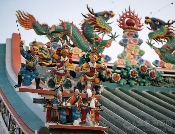 据统计,整座关帝庙的剪瓷雕人物共有129个左右。百位人物中,帝王将相、英雄豪杰、才子佳人、奸臣贼子人物形象各有其独自特点,没有一个是重样的。