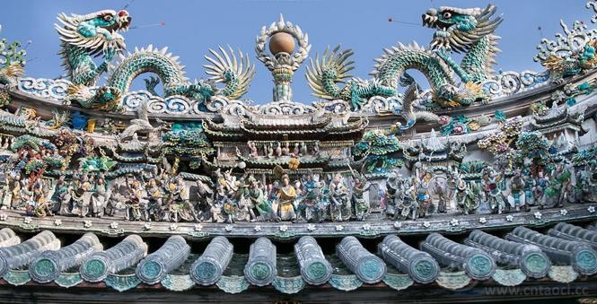 剪瓷雕以东山岛尤其具有代表性。这可能与当地寺庙多有关。面积只有194平方公里的东山岛,有大大小小的古今寺庙数百座。这些寺庙几乎都要用上剪瓷雕工艺做装饰。