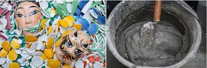 剪瓷雕至今已走过了漫长的岁月,也走过一个材料流变、工艺革新、解放劳动力的历程:传统的麻灰为现代的水泥所替代、传统的瓷片一度为彩色玻璃所替代、传统的瓷剪修边为砂轮机打磨所替代,传统的个体制作体系也受到当代产业化装饰工艺发展的影响。