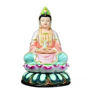 信佛民众的增多,佛教寺庙和石窟的大量修建,佛教文化艺术影响深入到社会的各个领域。莲花和忍冬纹饰也大量的出现在陶瓷装饰上。随着考古的不断发现,大量带有莲瓣纹的碗、罐、尊等陶瓷器实物出土。从众多的出土实物来看,这一时期的莲瓣纹式样大多直接来源于云冈、龙门等石窟的柱基,富有浓重的宗教色彩。南京东郊灵山出土的一对青瓷莲花尊,尊高85厘米,口径21厘米,底径20.8厘米。顶置有莲瓣瓣盖,中央有一方钮,钮四周堆塑肥厚短小的覆莲两层,周边饰竖立的三角形锯齿状变形莲瓣一周,下段贴附对称的二龙戏珠和忍冬、莲花图案各两组。腹上部饰模印重瓣覆莲两周,其下是贴花菩提叶一周和刻画瘦长莲瓣纹一周,莲瓣下垂,瓣尖上翘。腹下部饰仰莲纹两层,圈足如一喇叭座,饰覆莲纹两周。各层莲瓣均向外翻卷,丰腴肥硕,整件器物层层叠叠的饰有莲瓣纹,看起来蔚为壮观。