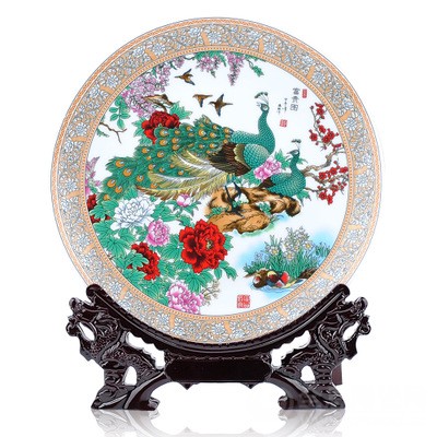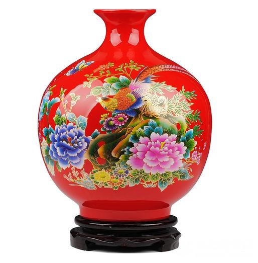 陶瓷器上用牡丹作为装饰纹饰始于唐代,这与唐代人(或说武则天)偏爱牡丹有关。牡丹花象征富贵荣华。宋代:花形较写实,花朵硕大,以磁州窑的白底黑花牡丹为代表。四川彭县磁峰窑白釉印花牡丹也硕大写实,多与凤合画,因当地盛产牡丹,即"天彭牡丹"。元代:青花瓷上多见,牡丹往往画成缠枝花,花瓣不填满色,留白边。牡丹叶多画成葫芦形。明代:变化多而迅速,各朝几乎都有自己的特点,不是几句话所能归纳得了的。较为显著的特征是多同各式凤组合成凤穿花,寓富贵无边的吉祥意。清代:也有牡丹与凤同画的。清代中晚期往往把牡丹插在花瓶里,寓"一品(瓶)富贵"之意。