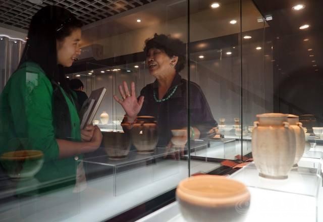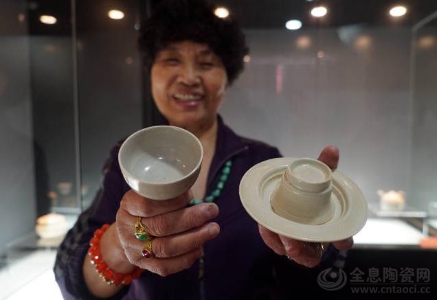 ↑5月18日,邹兰英在展示一套北宋年间的白舍窑青白瓷茶具。