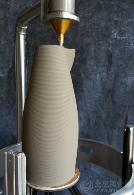 3D PotterBot另外一个显著的特点是能够3D打印很大的尺寸,它能够打印的陶瓷器皿最高可达17英寸(约43厘米)。从下面的图片中可以看到3D PotterBot如何精准地打印一个大尺寸的陶瓷产品。