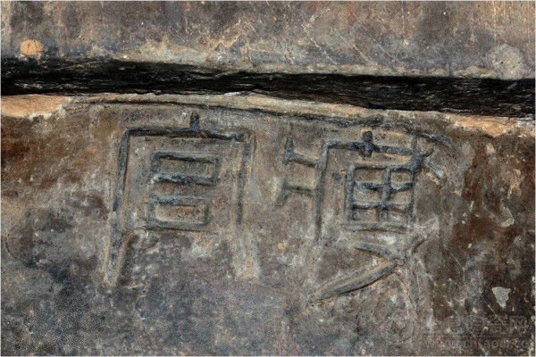 在出土的陶俑、陶马身上的一些隐蔽处,考古工作者发现了一些刻划或戳印文字。字数很少,一般只有2个字,最多的一件有11个字;陶文除了编号外,都是陶工名。这些陶工名大体上可以分为四类:一是在人名前带“官”字的,简称作宫字类;二是在人名前带“右”字或“大”字的,省称作右字和大字类;三是人名前带一地方名的;四是只有人名的,人名多数仅有—二个字,个别的为三个字。在上述四类陶工中,第一、二类是来自中央官府制陶作坊的陶工;第三类是来自地方制陶手工业作坊的陶工;第四类因文字过于简略,而对其来源尚难作出判断。