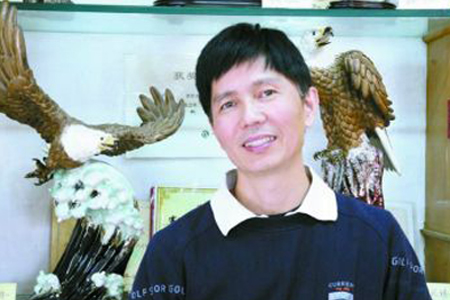 作为“石湾鹰王”曾良的门下高徒,霍冠华从事陶艺创作已近三十载。霍冠华继承了曾良大师的意愿,以鹰作为主要的创作题材,在前人的基础上,博取众家所长,形成了自己写实、工整、严谨的艺术风格,追求“形神兼备”的艺术效果。霍冠华塑造的鹰隼造型,表现了鹰隼这类猛禽的悍健傲岸的英姿,或展翅山巅,或搏击惊涛,或傲立峭壁,无不惟妙惟肖地再现了鹰隼勇猛、顽强、刚毅的特征。尤其是巧妙地运用了原坯薄釉淡彩的装饰手法,釉彩、陶土、雕塑相结合,赋予了作品栩栩如生的艺术效果。其作品在全国及省、市各展览评比中曾多次获奖,2005年被授予“广东省陶瓷艺术大师”,现为广东省陶瓷协会常务理事。