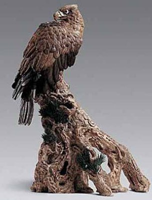 “勒古鹰眼疾”、“耸身思狡兔”,古人咏鹰时总是抓住鹰隼这类猛禽矫健、勇悍、敏锐的特征广为抒发,鹰在有意无意间被人类投射上智慧、力量、速度的崇拜,因此成为一种传统的动物“英雄”形象而被古今中外的艺术家及陶艺家所广泛创作,在众多鹰的艺术创作与陶艺创作者中,霍冠华正是其中比较出色的一位。