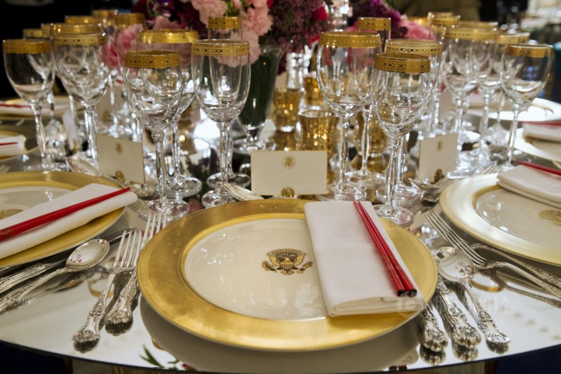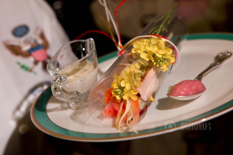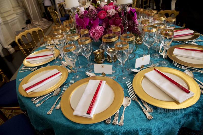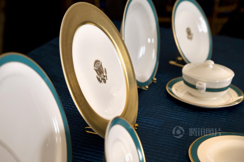 白宫27日公开国宴的餐具、摆设、以及第一夫人所精心挑选的瓷器,让外界对国宴有更多了解。