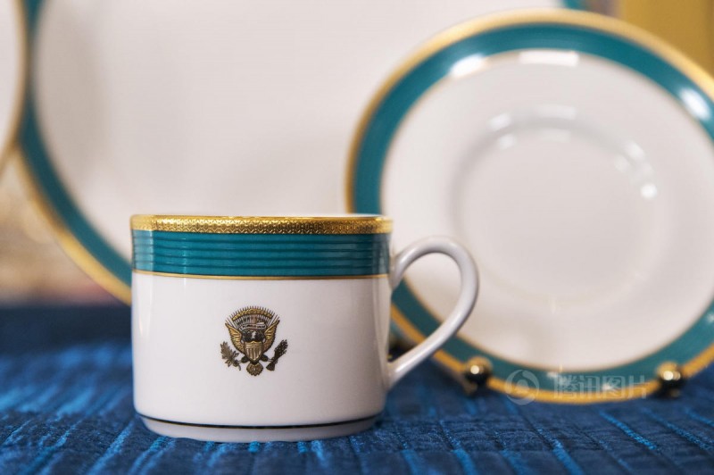 镶有美国国徽图案的咖啡杯。