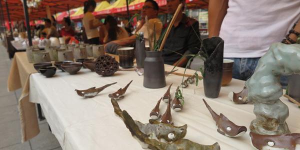 艺术馆外,来自全国各地的150家创意陶瓷商铺将举办持续五天的陶瓷集市活动,聚集了全国各地近二、三千件的陶瓷创意产品,涉及日用品、纪念品、玩具、机械装置等众多类,本次创意集市摊位的设计理念主要以原创、新颖为主,形式多样,陶瓷创意市集让手艺人和喜爱手艺作品的朋友有了面对面的交流机会,分享手艺人的故事和生活,感受手艺人创作的过程和状态。
