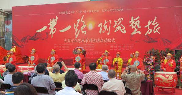 2015年9月20日下午,“一带一路•陶瓷艺旅”系列文化艺术活动在北京陶瓷艺术馆举行新闻发布会暨启动仪式。本次活动由中国文化部文化产业协会指导、北京市文化局支持;得到了中国陶瓷大师联盟主席孟树锋及刘立忠、郭爱和、徐定昌等国家级、省级工艺美术大师的鼎力支持。同时,清华大学教授张守智、浙江大学教授周少华等各大院校教授、学者组成的活动组委会也出席并担任本次活动的学术支持力量,社会各界友人、著名藏家和收藏机构、媒体机构莅临开幕现场。