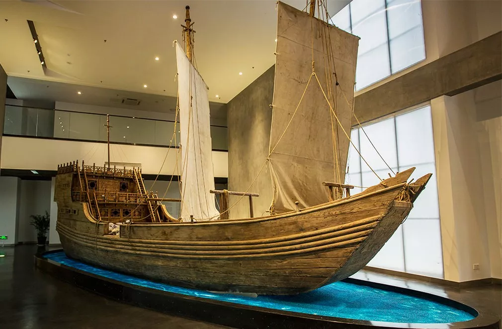 “南海一号”是1987年在广东阳江海域发现的一艘南宋时期福建泉州特征的木质古沉船,是目前世界上发现的年代最久远、船体最大、保存最完整的沉船,后打捞出数万件南宋瓷器,被称为我国宋代名窑瓷器技艺及大量出口的历史见证,因此,高淳陶瓷博物馆以仿制“南海一号”木船为展馆开篇之作,以此开启古今陶瓷文化之旅。