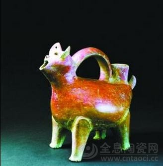 红陶兽形壶是大汶口文化时期典型器物之一。在公元前4300年至公元前2500年,以泰山地区为中心,东起黄海之滨,西到鲁西平原东部,北至渤海南岸,南及今江苏、安徽北部的广大地区,先民们开始了刀耕火种的农业,手工业制作也逐步分离并发展起来,陶器便是当时当地最具代表性的手工制品,大汶口文化遗址出土了1000多件精美的陶器,品种有红陶、灰陶、黑陶、白陶;器型有鼎、鬶、盉、豆、尊、单耳杯、觚形杯、高领罐、背水壶等;纹饰有划纹、弦纹、篮纹、圆圈纹、三角印纹、镂孔等。这说明大汶口文化时期陶器的制作无论是原料的选择还是火候的掌握,无论器型的塑造还是图案的装饰,均已达到相当高的水平。