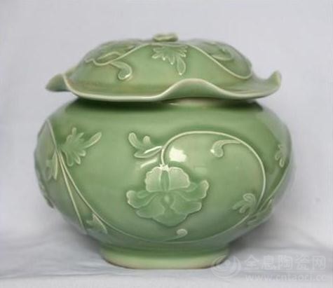 元代龙泉窑青瓷除造型、烧造工艺特点突出之外,在胎釉、装饰等方面也有鲜明的时代特点。 在胎釉特征上,虽然南宋时期那种薄胎厚釉,釉色粉青的制品仍有生产,但元代龙泉窑生产的主流产品还是一种胎体厚重,釉层较薄,釉色以绿色为基调的青瓷,其色调除标准的翠绿色外,还见有青灰、青黄等色,而因烧成时窑内气氛的改变,有些制品的釉色会完全变为黄色,俗称“黄龙泉”,别有一番韵味。