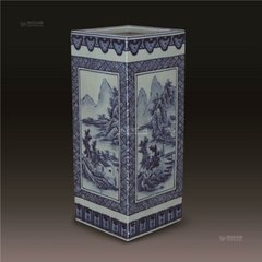 陶瓷是属于工艺美术范畴的东西,有古老的遗留,也有新时代的制品,姑勿论新旧,只要能乐人动人,就美。并非是所有的陶瓷器具都能乐人动人,陶瓷不像被称为“纯艺术”的音乐、绘画那样,作者的主观愿望与情绪较容易融入作品中去,因此能相对容易把握创作成果。陶瓷就不同,往往是陶艺家充满创作激情,把作品原稿完成了,进窑烧制时心情是忐忑不安。开窑时,也许有意想不到的惊喜,或发现烧成品与自己的愿望相距太远,更有甚者,所有的心血都化为乌有,这种沮丧是可想而知的。一件好作品出来了,再经过一代又一代人的鉴藏、摩挲而能完好无损,这又添进了无数人的情志,作品社会美的价值因此得到提升。至于那些制作工艺复杂、成型和装饰难度大的制品所体现的材质美和艺术美的水平就更高。例如7月6日举行的广州嘉德夏季拍卖会瓷器工艺品专场上,编号为695号的《清代青花开光山水人物纹方瓶》(估价:8万-10万元),瓶高50.7厘米,瓶体由四层镶接而成,高足外撇,腹部外圆弧,肩颈部内圆弧,直颈方唇沿,总体没有歪斜现象。正方瓶的接合好处理,因为只需要大小相同的几片泥板直线粘合起来就成,此瓶则有内外圆弧的不同粘合,而又要组成一个规整的瓶体,这就必然要费一番脑筋和功夫,其成型工艺用“高超”二字来形容是不为过的。瓶上装饰手法丰富多样,有平面开光、锦地开光,有图案化的也有写生纹样,纹样层次鲜明,主题画面深远开阔。外壁翻腾的江牙海水与肩颈部锦地开光花果一动一静,令审美心情因此有了张弛开合。青花色调沉稳,绘画线条清晰流丽,无论是造型还是装饰手法都充分表现出多样性的统一和对比的和谐。
