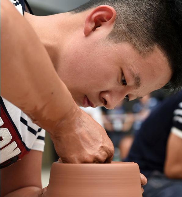 9月23日,首届全国陶瓷成型职业技能竞赛广西预赛区滚压成型陶瓷技能比赛现场。(刘钦明 摄)