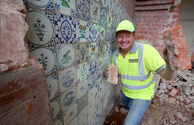 英国工程队拆房时天降横财 发现价值50万元古董瓷砖