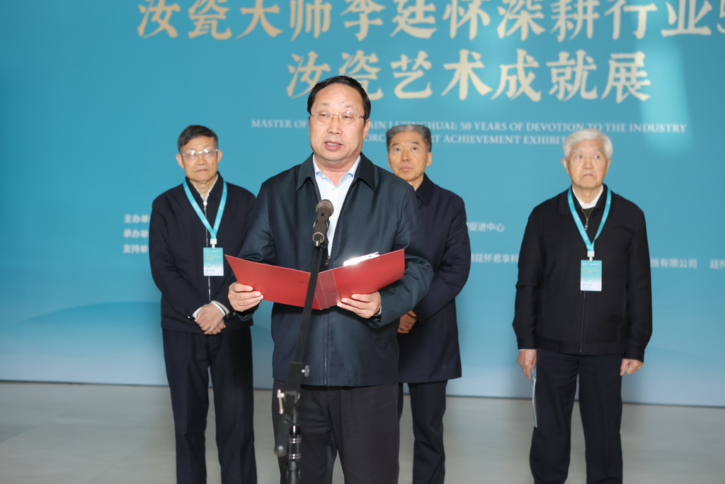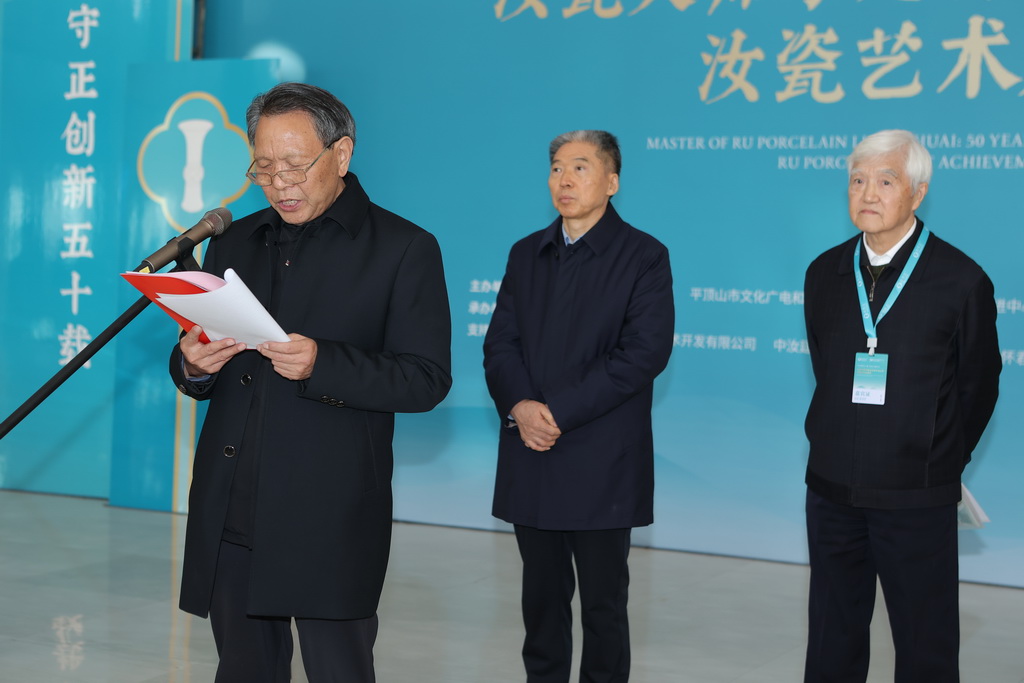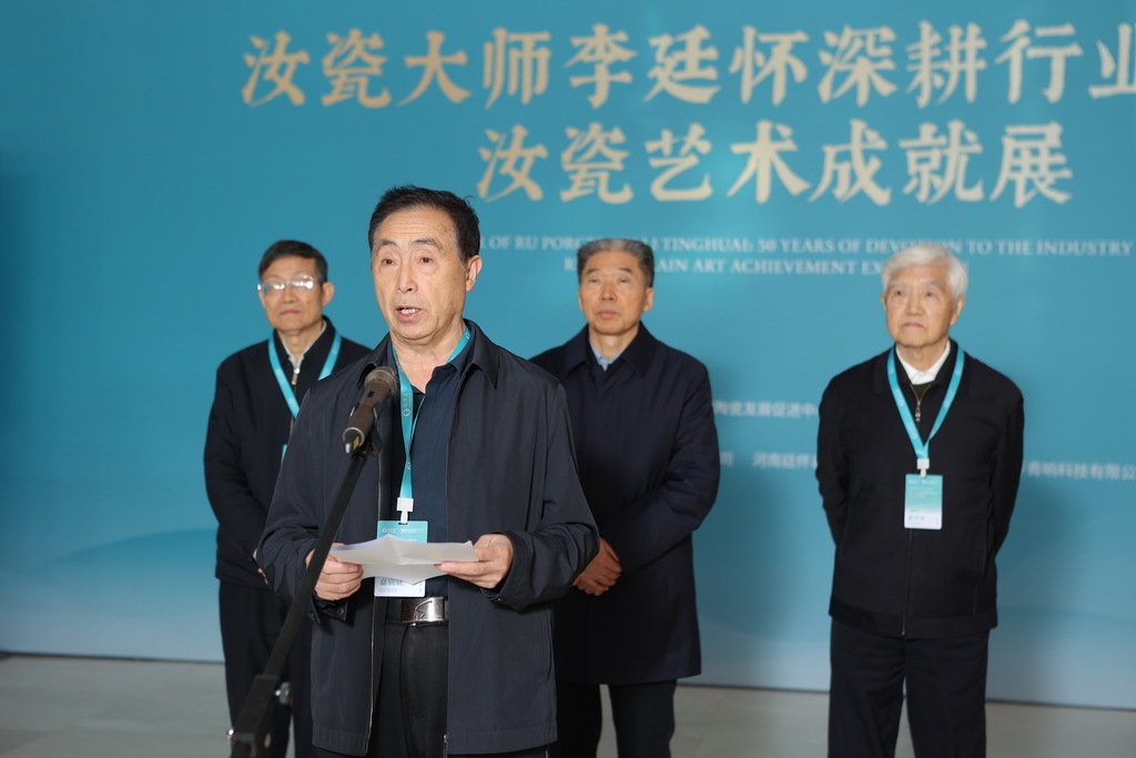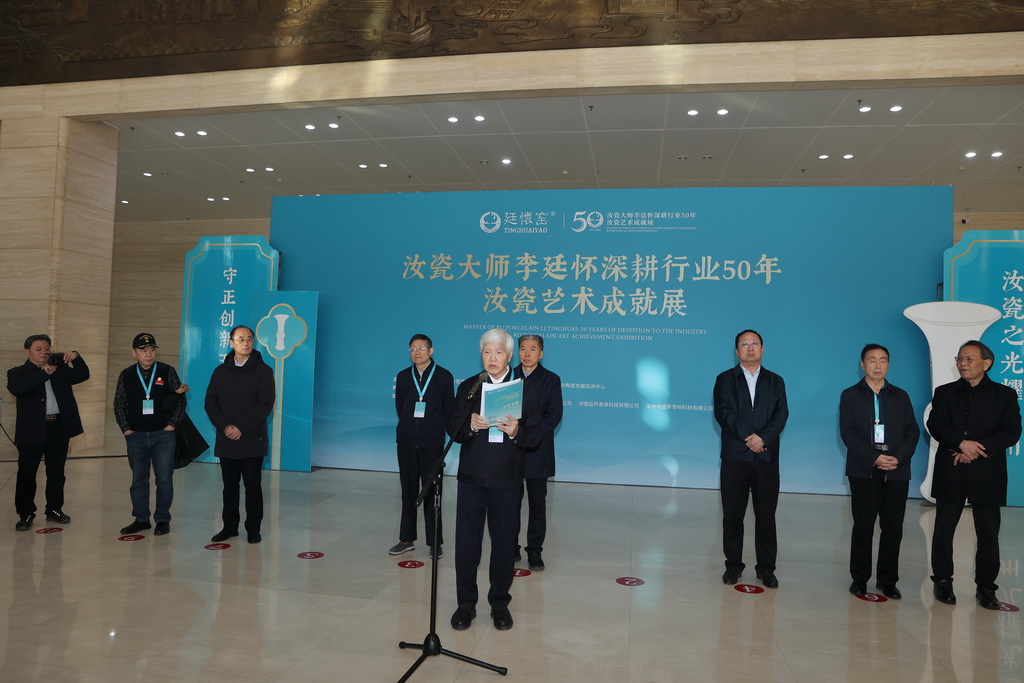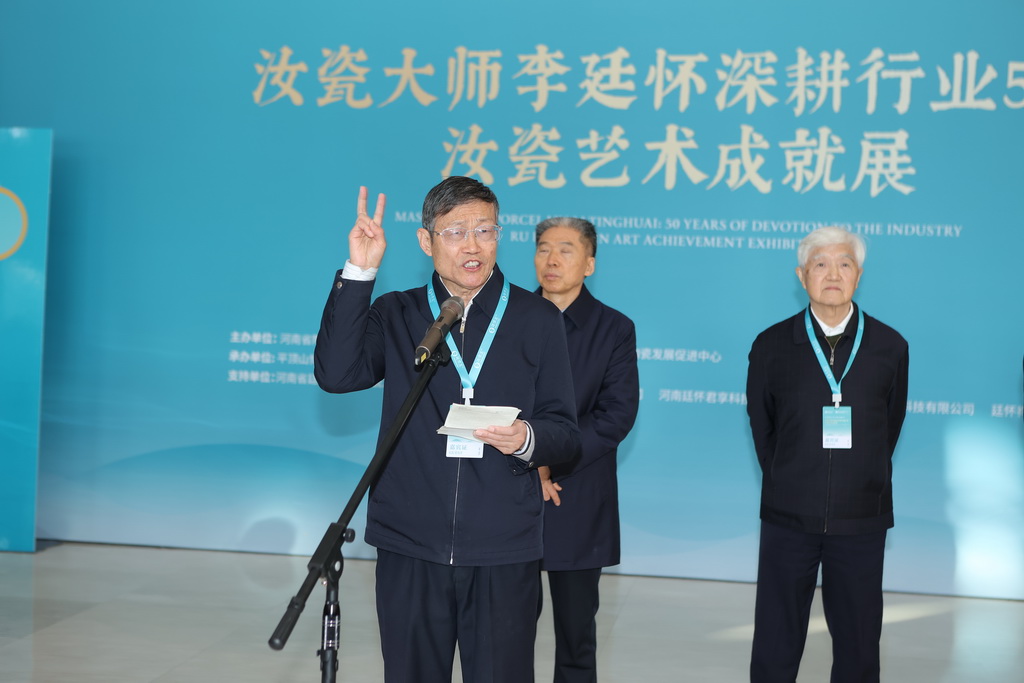 当天上午,汝瓷艺术成就展开幕式氛围庄重热烈,平顶山市委常委、宣传部部长王永记,河南省陶瓷玻璃行业协会会长杨德林,中国陶瓷工业协会副理事长、中国陶瓷设计艺术大师、国家级非物质文化遗产汝瓷烧制技艺代表性传承人李廷怀,民盟第九、十届中央副主席,第十届、十一届全国人大常委会委员李重庵,中共十七大、十八大代表,十二届全国政协委员,国家档案局原局长,中央档案馆原馆长杨冬权先后登台致辞等先后登台致辞,既彰显了各级部门与社会各界对汝瓷文化传承的高度重视,也充分肯定了李廷怀大师半个世纪以来为汝瓷技艺复原、创新发展作出的卓越行业贡献。